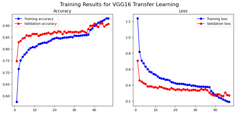 VGG16 (91% accuracy): I loaded the pre-trained VGG16, froze its layers, and trained our own small “head.” Then, we unfroze the top few layers of the base and continued training with a very low learning rate. The training was incredibly stable, and the result was a stunning 91% accuracy.