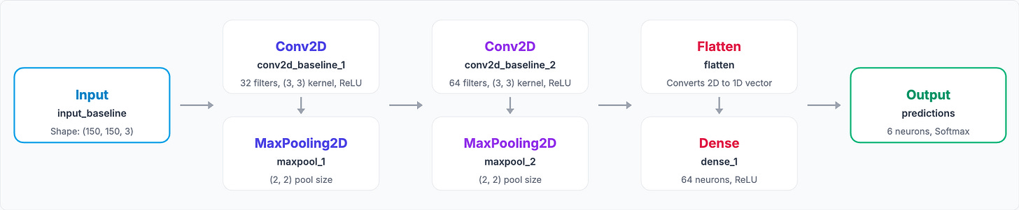 Every AI project needs a starting point, a baseline. Mine was a simple CNN built from scratch. Think of it as the Minimum Viable Product. The goal wasn’t perfection; it was to prove the concept was viable and to get a score on the board that we could improve upon.