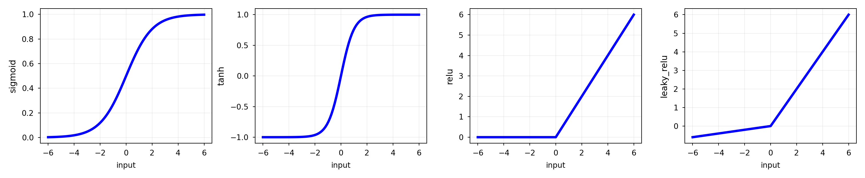 Sigmoid and Tanh: These are older styles that compress the output. Sigmoid squishes it between 0 and 1, while Tanh squishes it between -1 and 1. You don’t see them as often in hidden layers anymore, but Sigmoid is still useful for binary (yes/no) output layers.