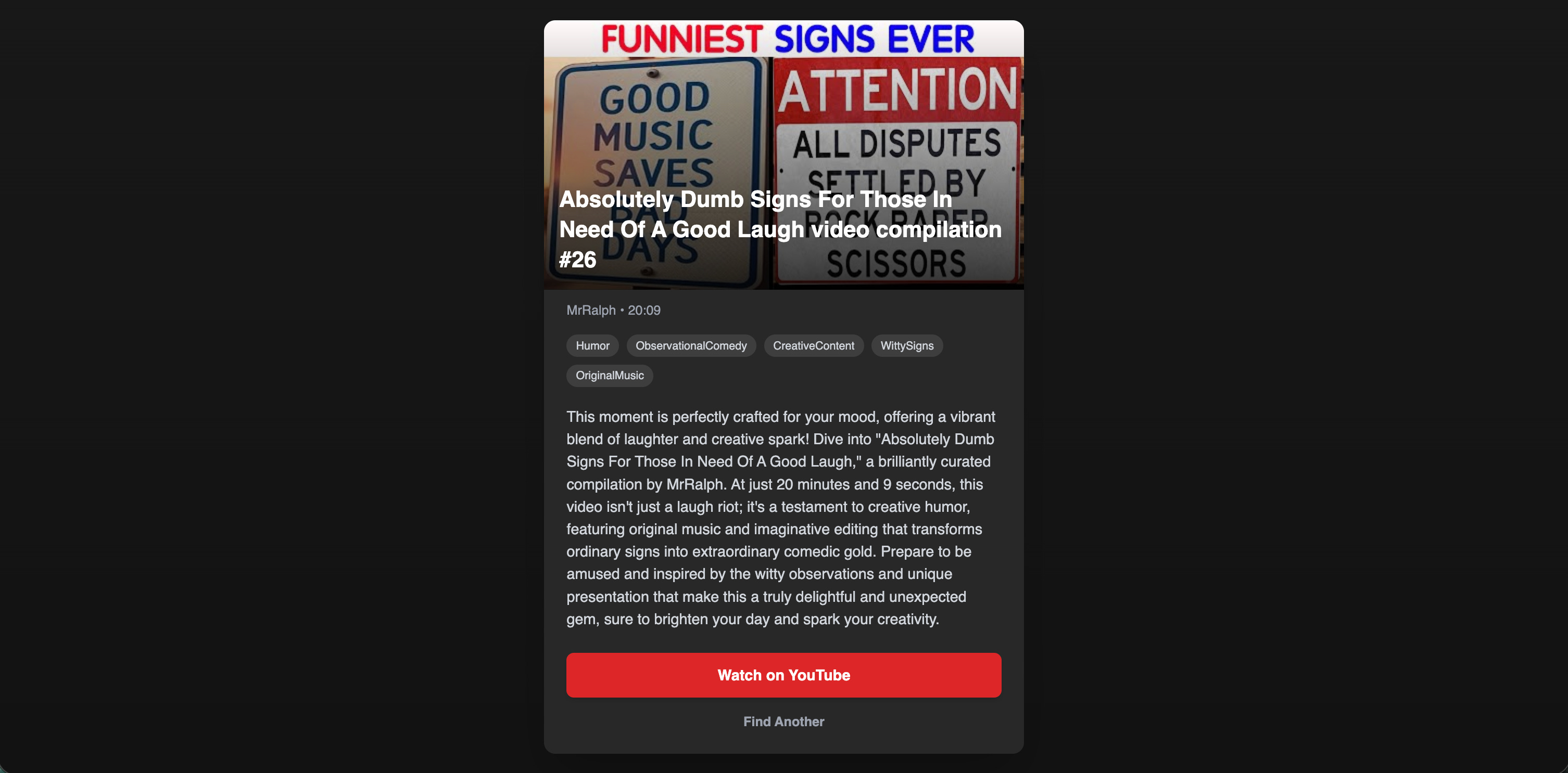 And then, the magic happens. “Moment” instantly filters the infinite ocean of YouTube to find one hidden gem just for you. It doesn’t give you another list to scroll through. It presents you with a single, perfect suggestion.