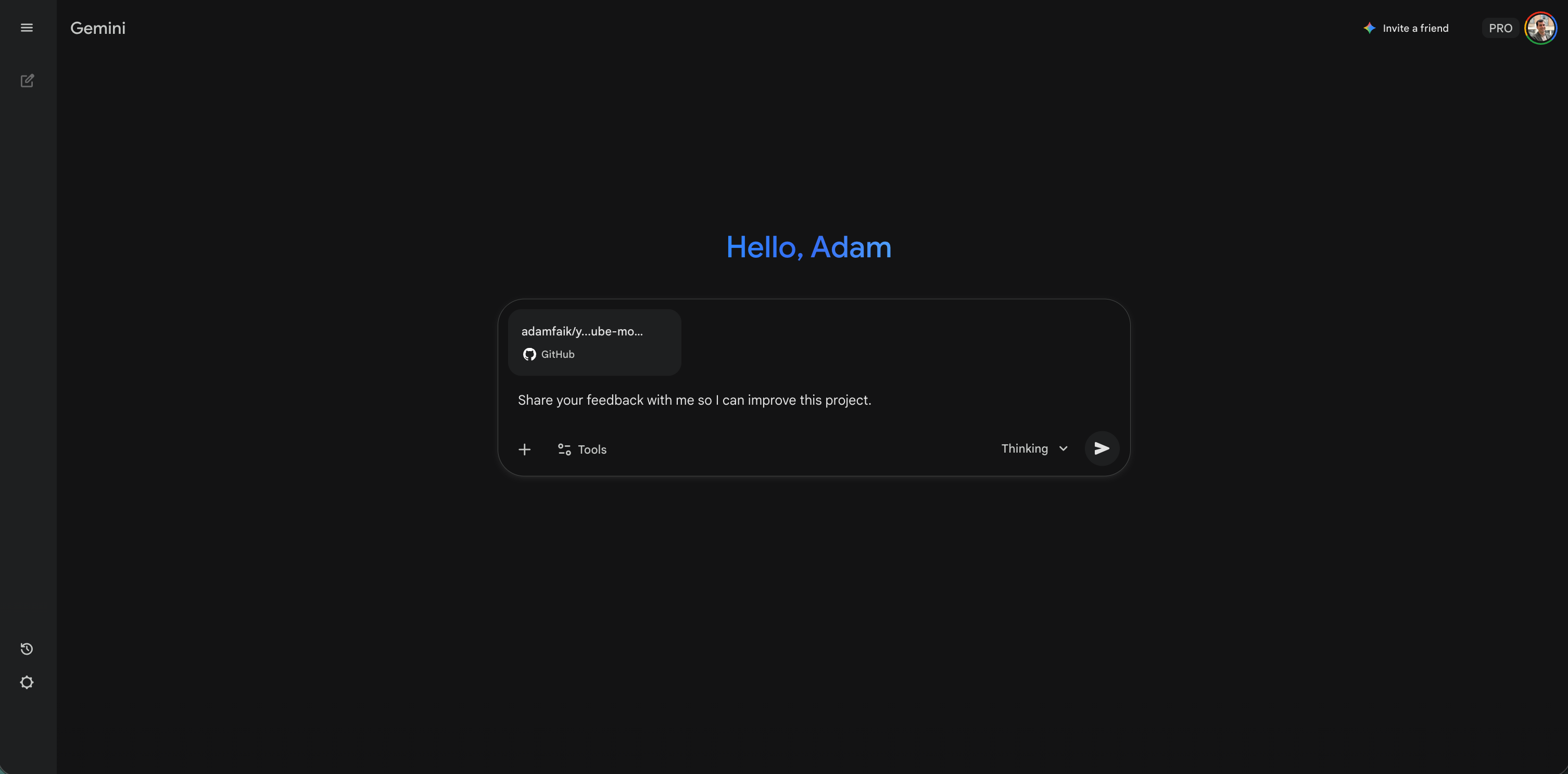 The “developer colleague” principle: I treated Gemini like a junior dev sitting next to Google AI Studio and me. I didn’t just ask for the result; I asked for a plan. “How can I display accurate YouTube data on the app?” The LLM recommended steps, and I followed them, keeping it informed of my progress.