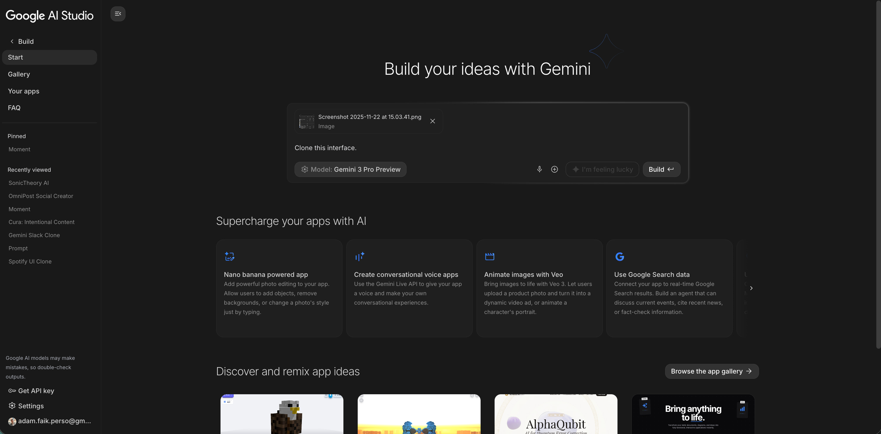 Prompt: Upload it to AI Studio and ask it to clone the interface.