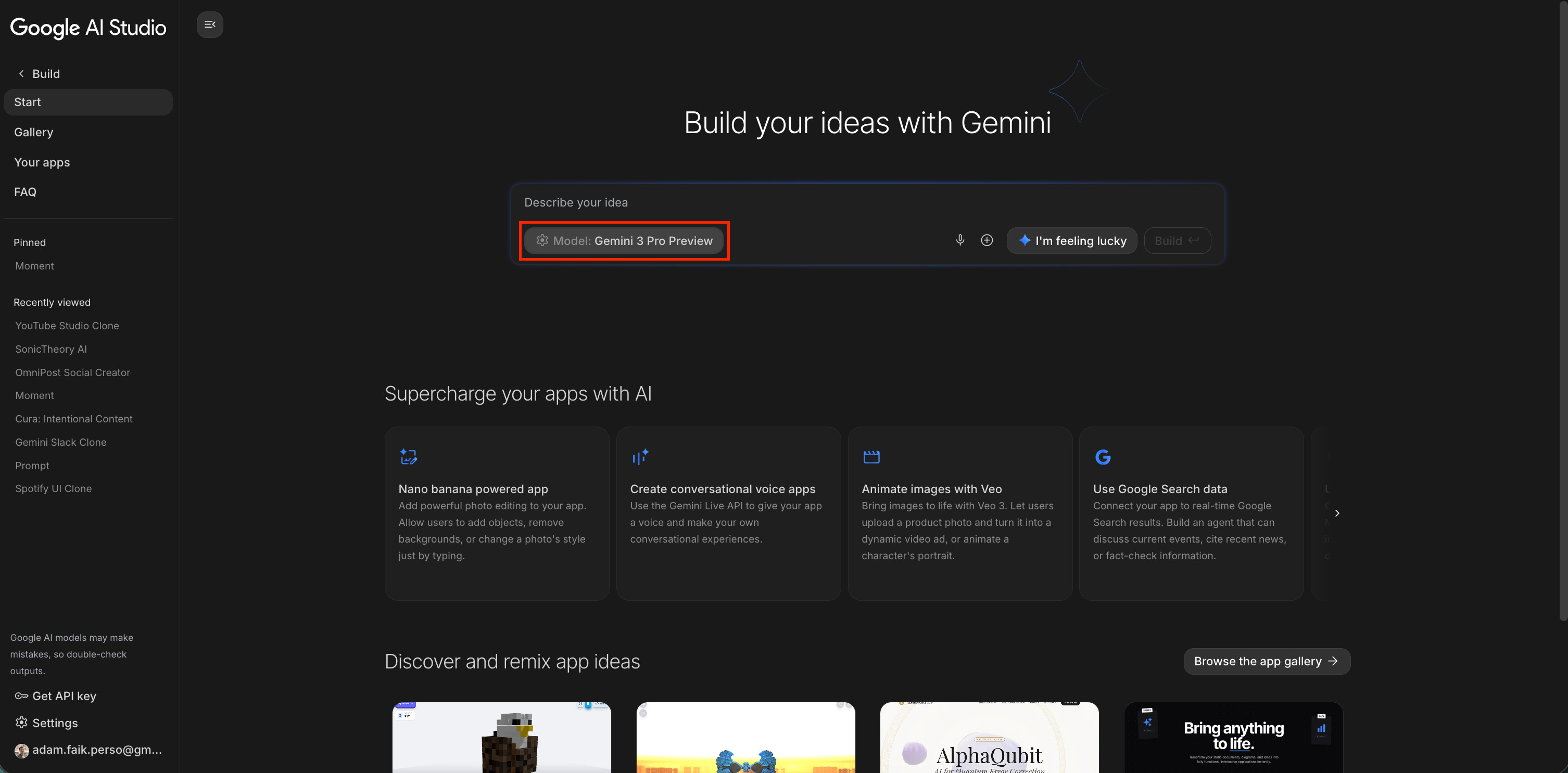 Google AI Studio (aistudio.google.com): This is the car factory. It is the developer workbench where you can open the hood, swap the engine, and build your own vehicle.