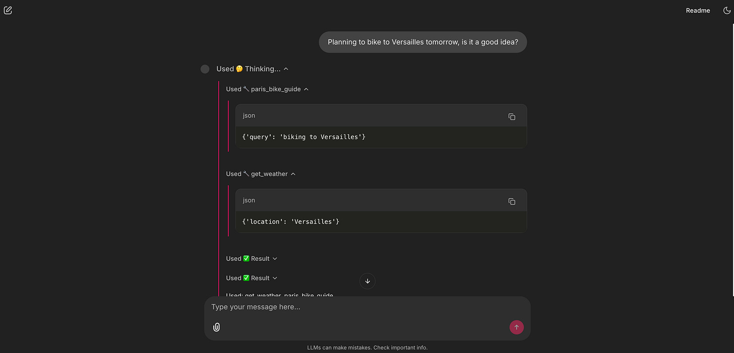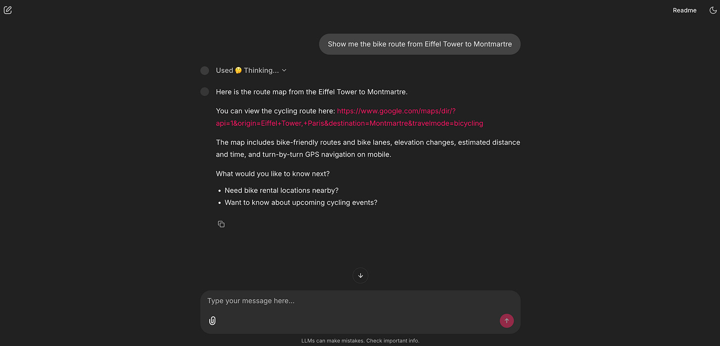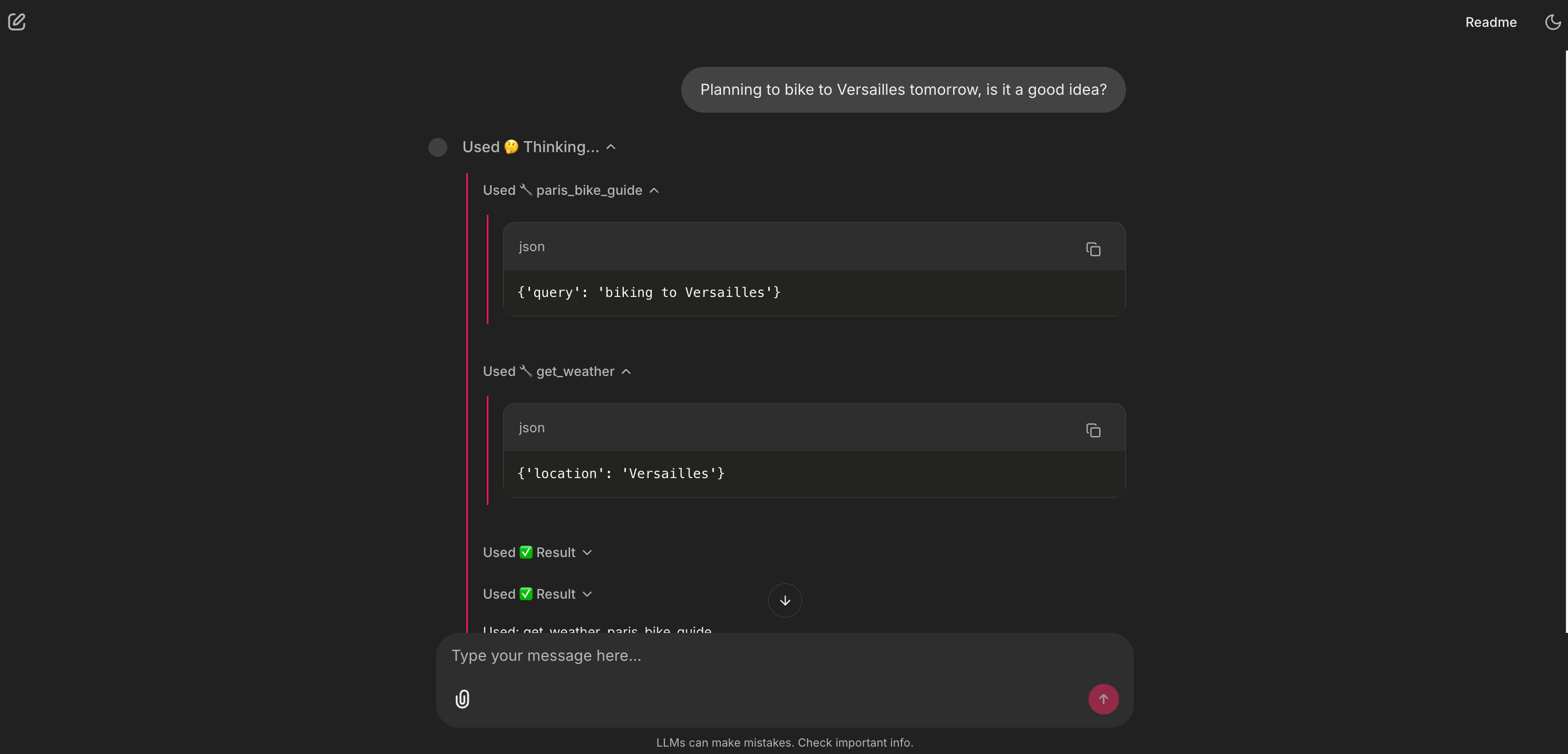 So, the “Paris by Bike” agent works. It can answer complex, multi-step questions.