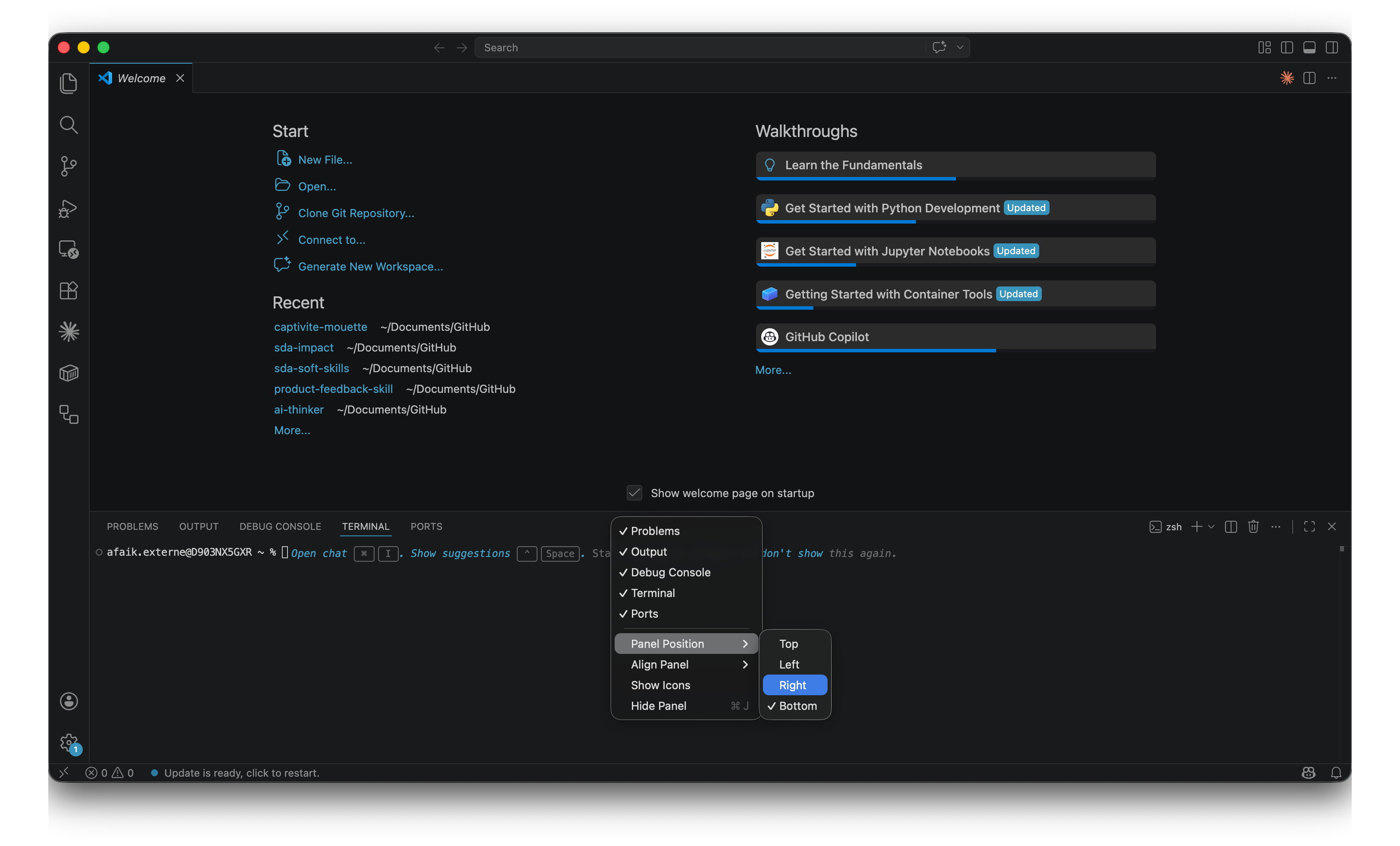 One tip that made a big difference for me: move the terminal panel to the right side. In VS Code, right-click the terminal header bar, select Panel Position → Right. This puts your files on the left and Claude Code on the right. Much easier to work with. I spent way too long with it at the bottom before discovering this.