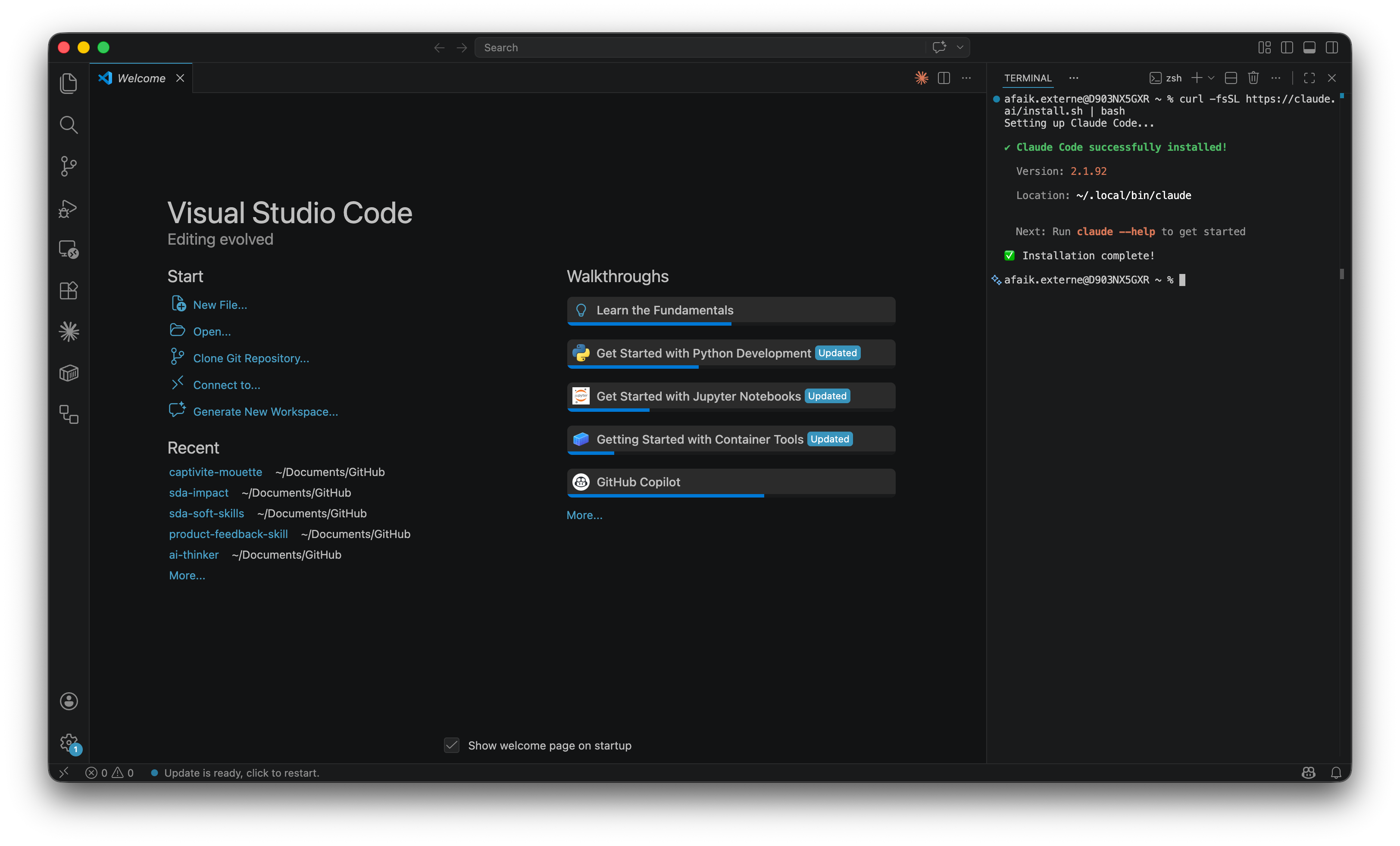 curl -fsSL https://claude.ai/install.sh | bashThat’s it. One line. This comes straight from the official quickstart guide.