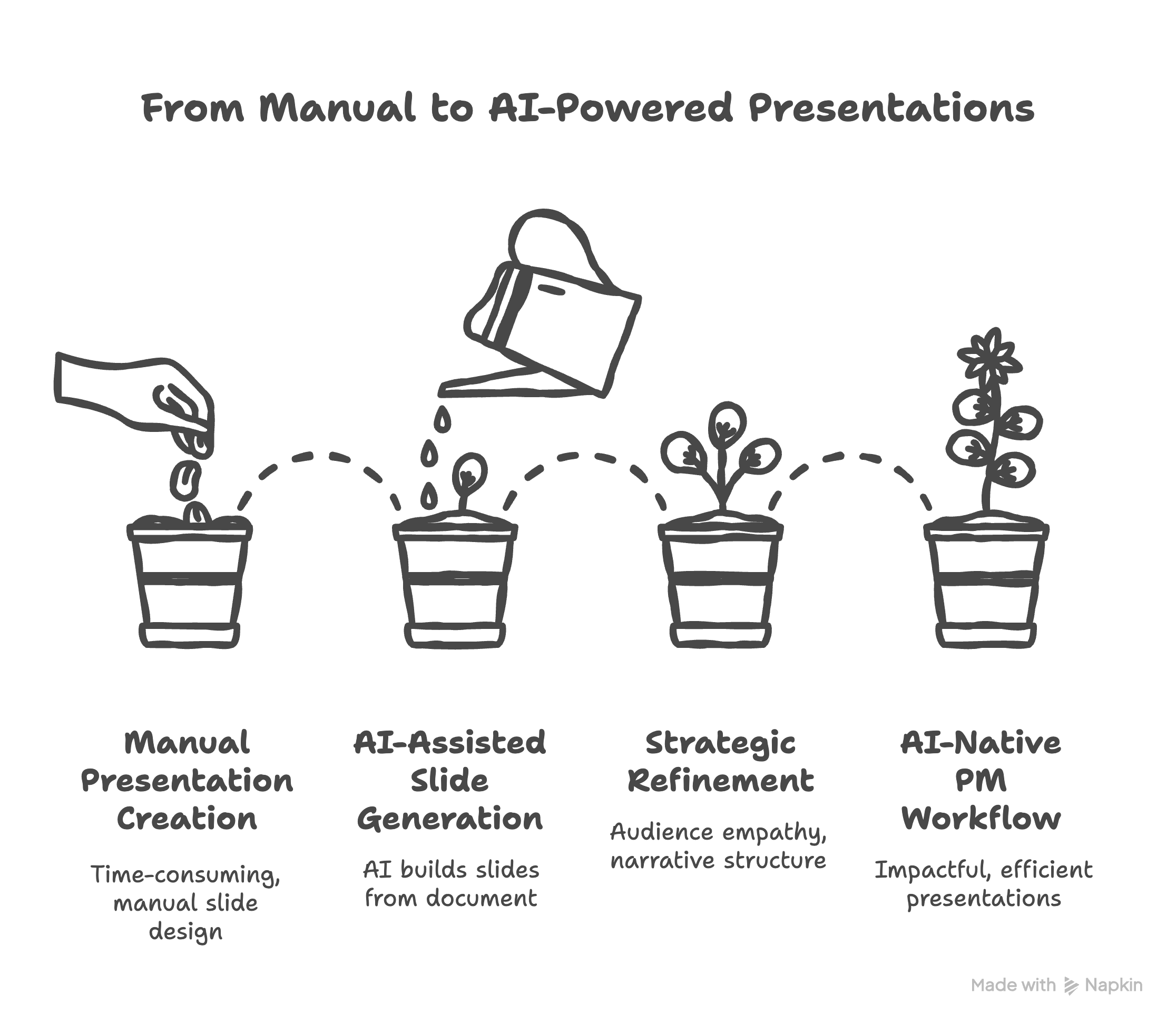 Final Lesson. The 10x PM of tomorrow won’t be the one who’s the master of PowerPoint animations. They’ll be the one who is best at directing AI to communicate their vision clearly and rapidly. This workflow is how you start building that muscle.