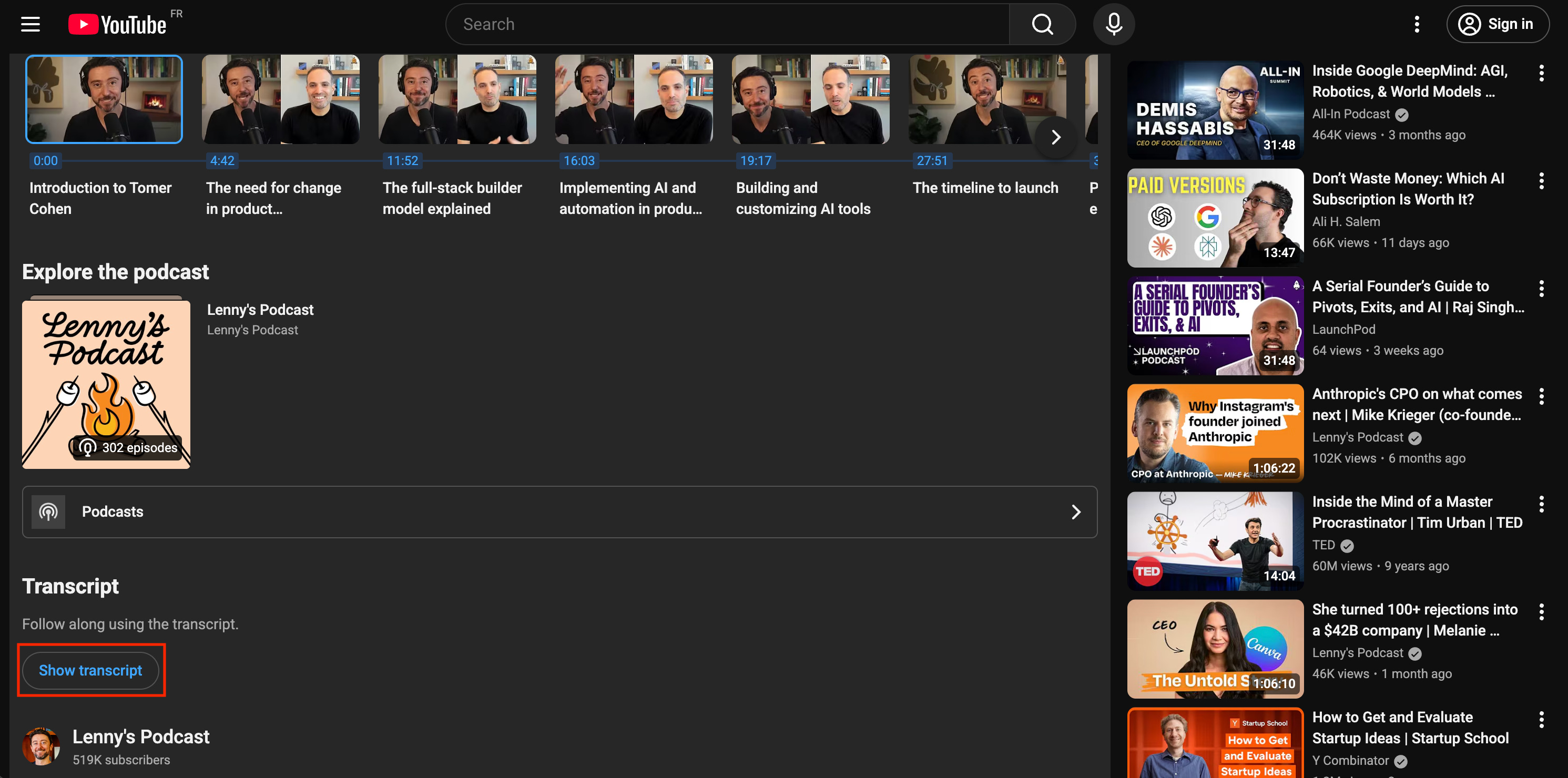 Get the raw text: I went to the video, opened the transcript, and copied the text into a markdown (