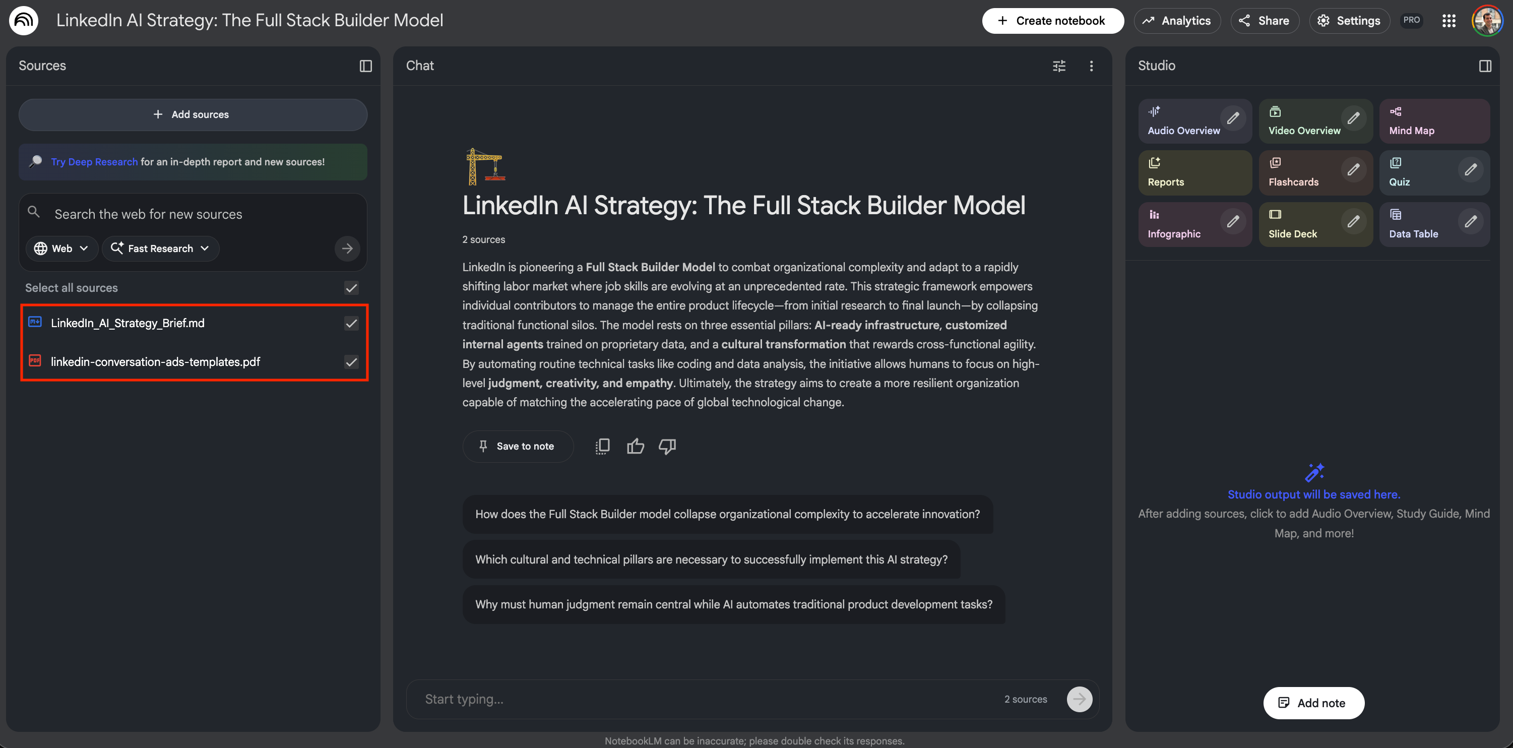 I went to NotebookLM, created a new notebook, and uploaded two specific files: