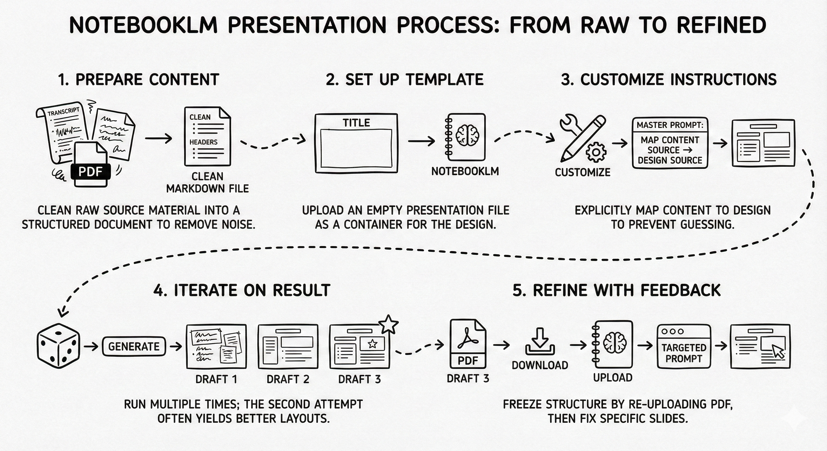 NotebookLM’s slide feature is powerful, but it requires the right workflow. By using context control, empty templates, and clear instructions, you can save massive time on high-stakes presentations.