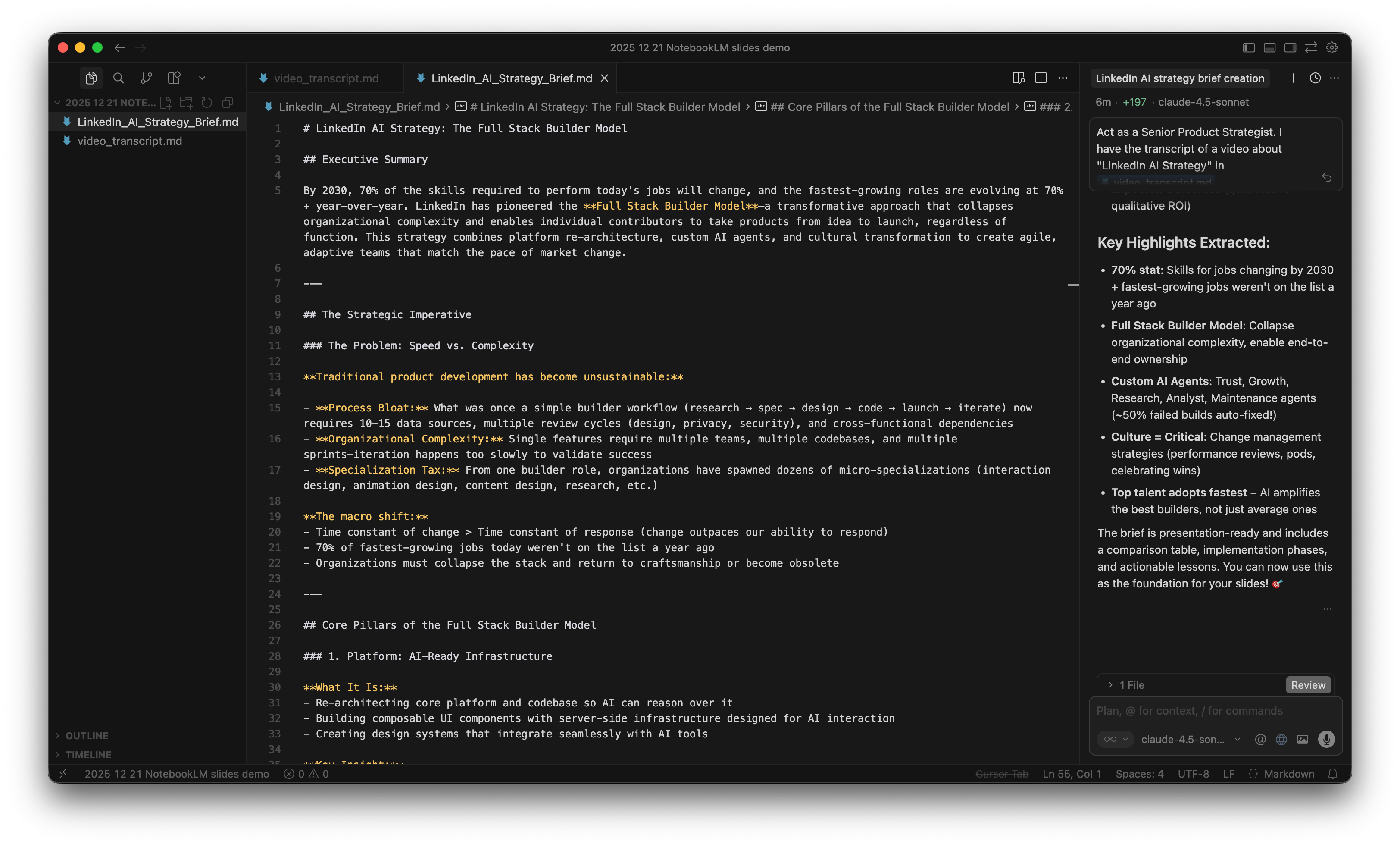 Please analyze the transcript and generate a new file named `LinkedIn_AI_Strategy_Brief.md`.
