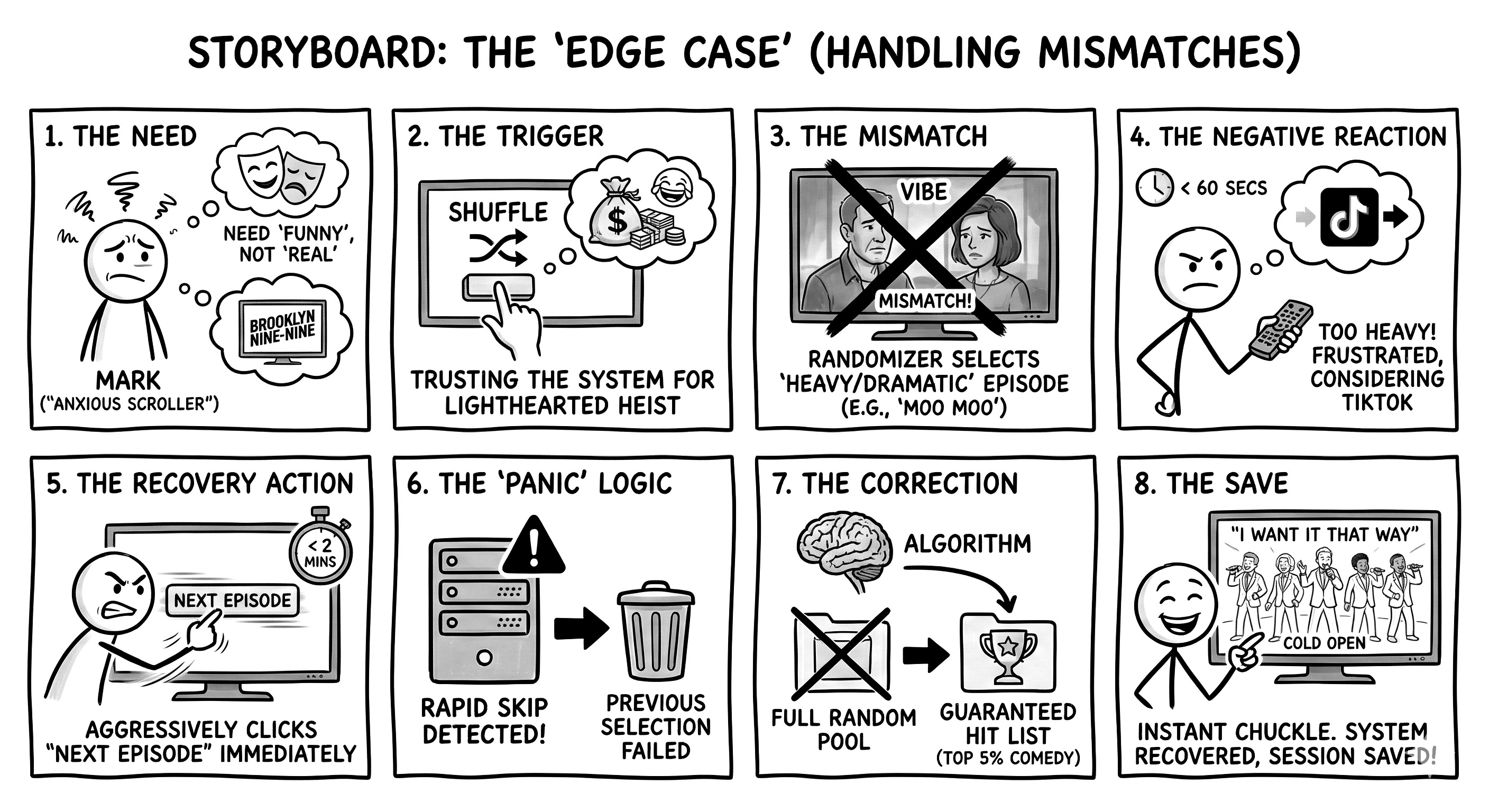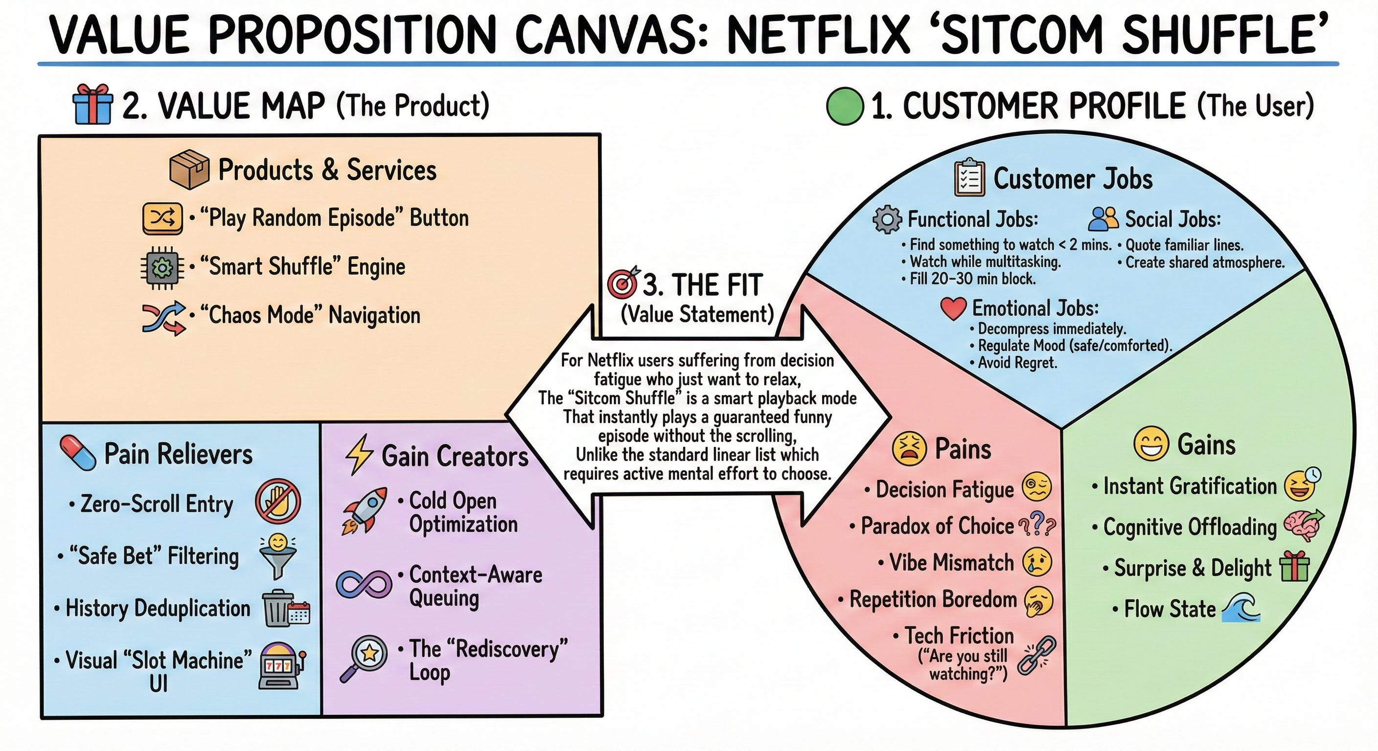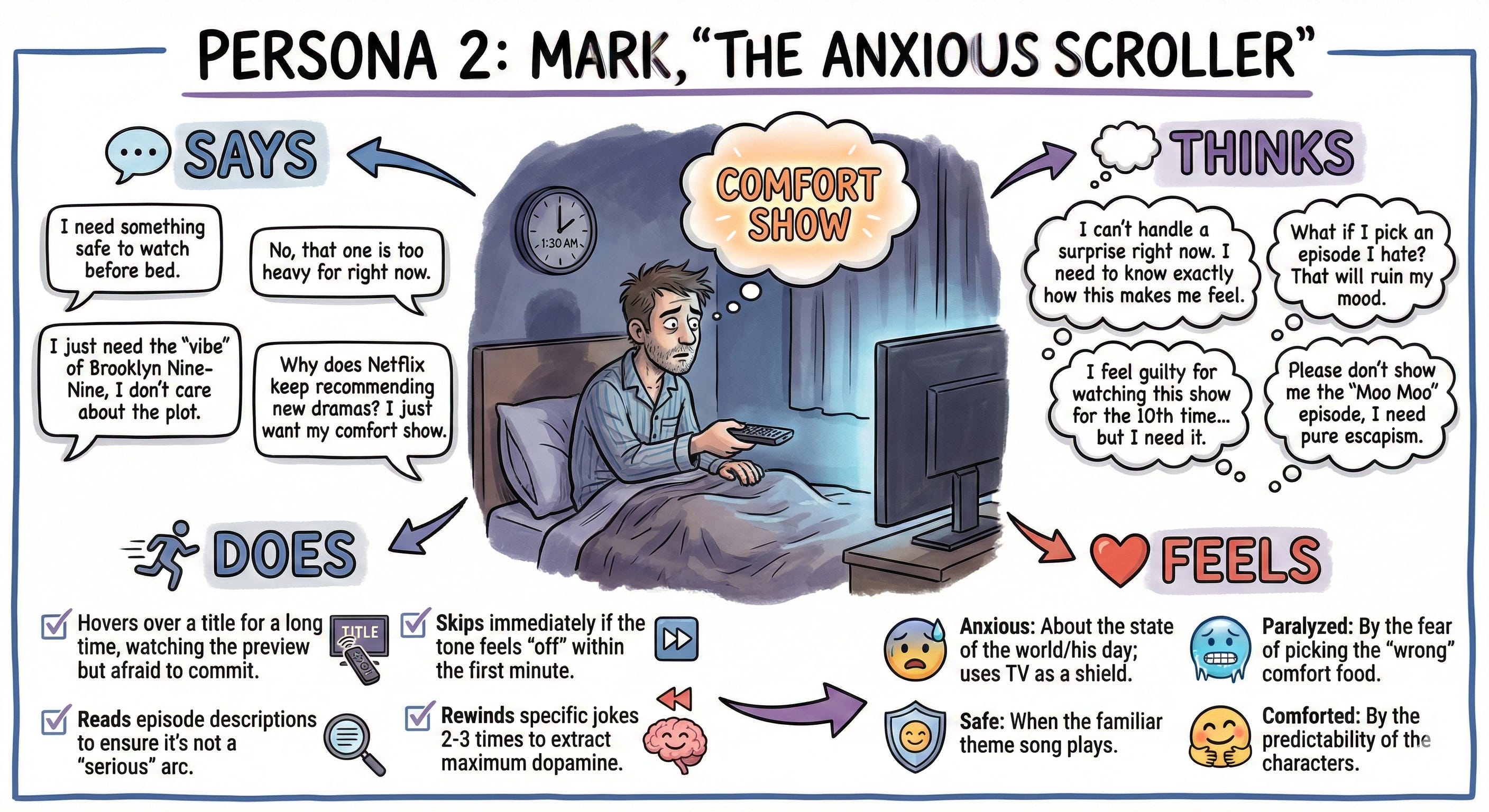 Imagine a user persona we all know very well. Let’s call him tired Tom. He has a few sitcoms he loves (Friends, The Office, How I Met). He has seen them a dozen times. He comes home from work, exhausted. He doesn’t want to decide. He doesn’t want to scroll. He just wants to click one button and have an episode start by magic.