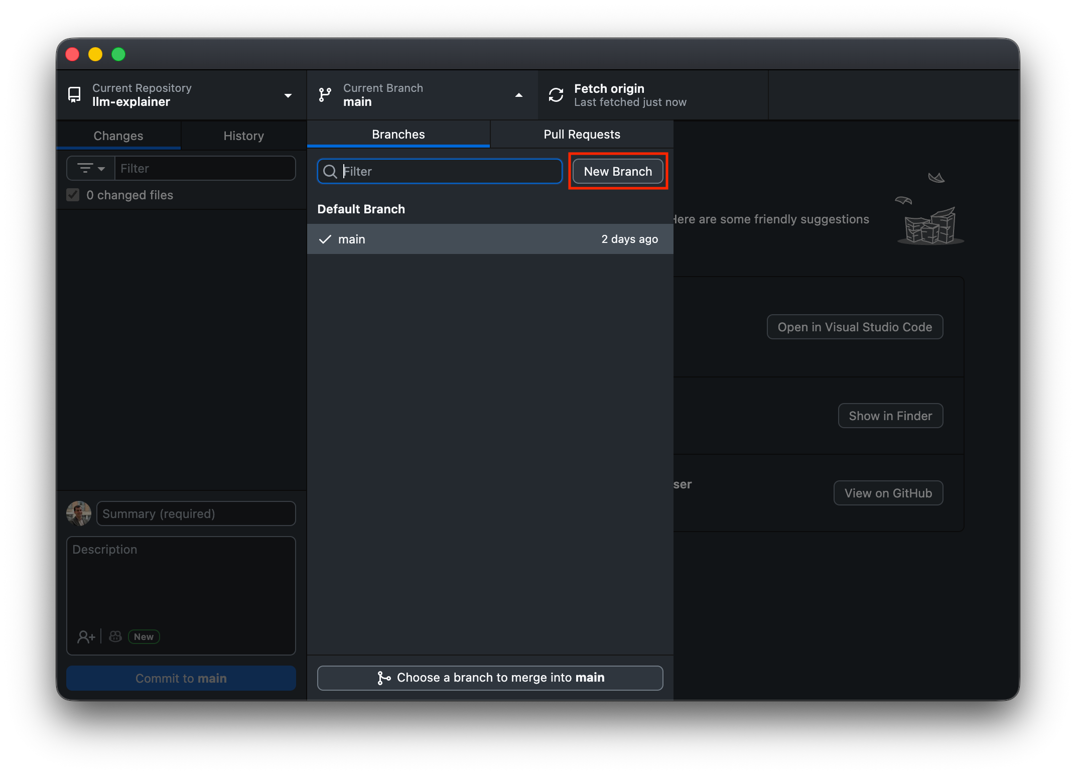 experiment-dark-mode(or whatever feature you are building).Click Create Branch. Note: Nothing changes on your screen, but you are now in the parallel universe.