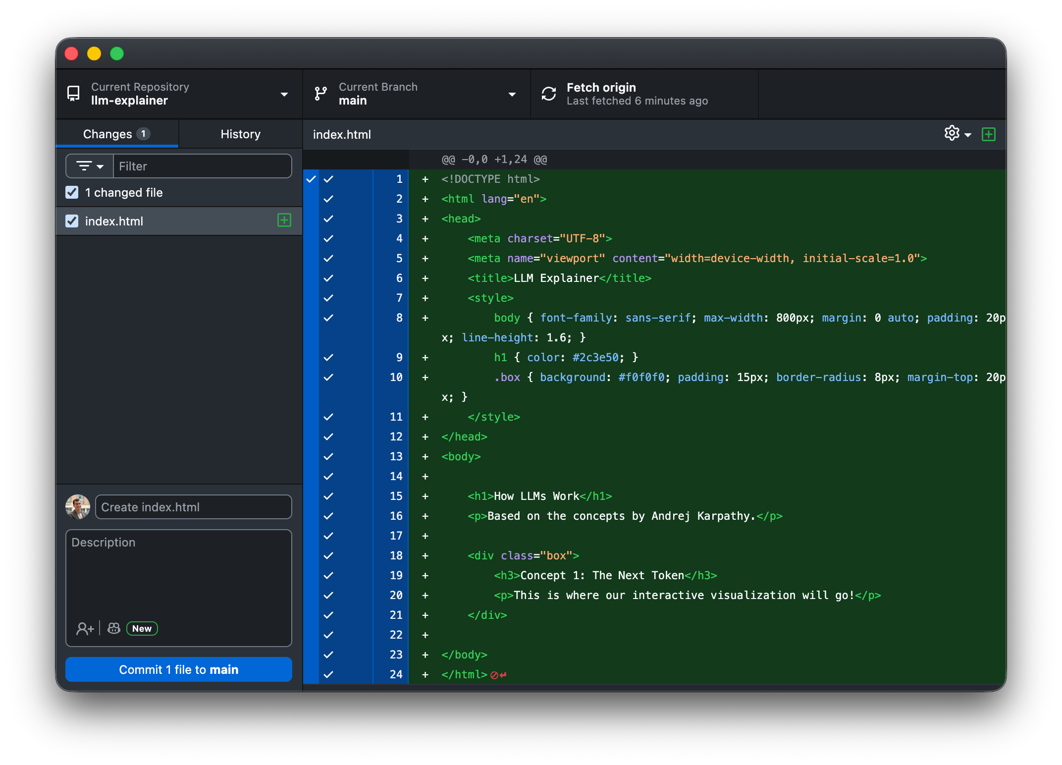 You have now successfully moved code from an AI chat window, into a local file on your hard drive, and up to the GitHub cloud servers. You are an AI builder, ready to publish to the web.